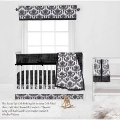 Bacati – Classic Damask Black/Grey/White 10 Pc Crib Bedding Set With Long Rail Guard Cover
