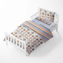 Bacati – Mod Sports Blue Orange Chocolate 6 Pc Crib Bedding Set With Long Rail Guard Cover