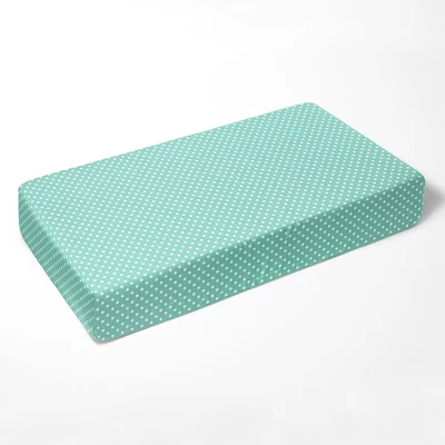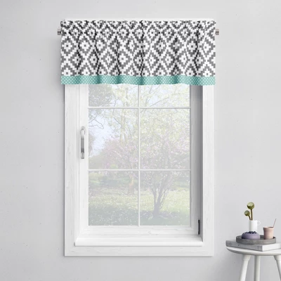 - This Bacati 10-piece Crib Set Includes Reversible Comforter/Playmat (33 x 43 inches), Crib fitted sheet (52 x 28 x 6 inches), Crib Skirt/Dust ruffle (13 inch drop) Diaper Stacker (holds more than 30 newborn diapers), Reversible Long Crib Rail Guard Cover (52 x 12 inches), Window Valance (15 h x 56 w inches with 1.75 inch Rod Pocket), 3 pc Wall Hangings Set and Musical Mobile in fun, colorful and signature prints in 100 percent cotton 200 Thread Count percale fabrics. Designed in United States by Experienced Designers. Many coordinating items available to purchase separately in this Bacati Love Aztec Gray Mint Bedding Collection.
