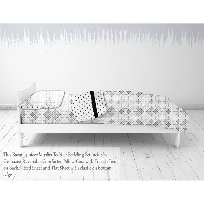 Bacati – Love/Hearts Muslin 4 Pc Toddler Bedding Set, Black