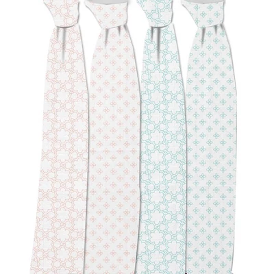 Bacati – Petals/Floral Muslin Swaddling Blankets Set Of 4 Aqua/Coral
