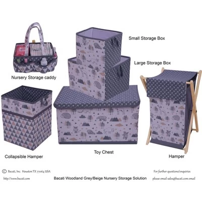 Bacati – Woodlands Gray/Beige Neutral Collapsible Laundry Hamper