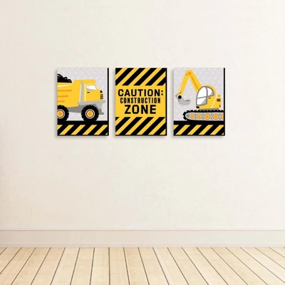 Dig It – Construction Party Zone Wall Art Set INCLUDES 3 ready-to-hang construction themed panels and non-marking wall mounts for easy hanging. Dig It – Construction Party Zone artwork is perfect for home decor. Dig It – Construction Party Zone Wall Art and Home Decor SIZE each 10 inches high x 7.5 inches wide x .5 inches thick. Under construction lightweight art prints will arrive ready to use – no frame needed. The black edge gives each print a modern, finished look. EASY TO HANG: Simply attach a non-marking wall mount (included) to each corner of a Dig It – Construction Party Zone art panel and press to hang in desired location. Wall mounts are repositionable, so you can redesign your artwork display at any time. PREMIUM HOME DECOR: 3-piece Dig It – Construction Party Zone Wall Art Set is professionally printed on thick material with a black edge. You will not need to frame this set of under construction room decor. Each standout print is ready to hang and will add a contemporary touch to any room. MADE IN THE USA: Dig It – Construction Party Zone Room Decor is designed and manufactured at our Wisconsin facility using materials that are Made in the USA.