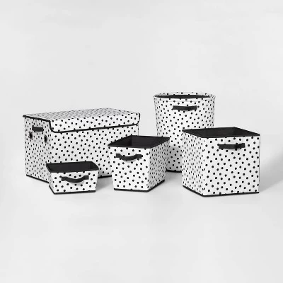 Help your kiddo keep their room clutter free with the Dotted Canvas Bin from Pillowfort™. Designed in a cylindrical silhouette and featuring a deep design, this kids storage bin is great for storing anything from clothes to books or board games, while the open-top design gives them easy access to its contents. Plus, the two side handles make it easy to carry from one place to the other. Adorned with black dots on a white background, it will look great placed in any corner of their room.