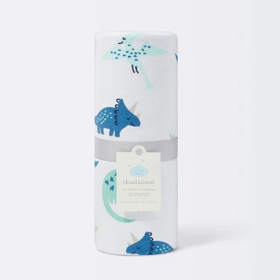 Jersey Knit Reversible Faux Fur Blanket Dinos – Cloud Island™ Blue/Green