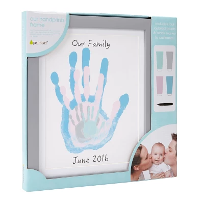 - DIY Family Handprint Set includes one black marker, four paints, white mat, and gray frame with easel backing and sawtooth hanger