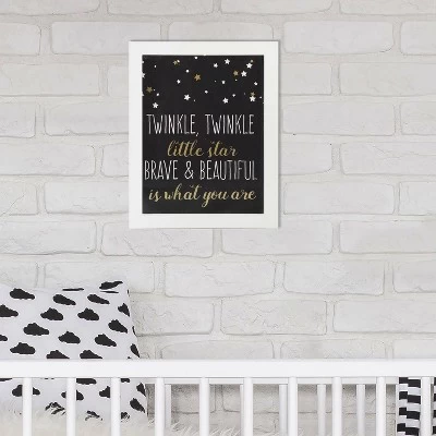 A nursery rhyme for modern times is the perfect description for Brave & Beautiful Framed Artwork by Linden Ave. The velvety black of night skies forms a backdrop of the heavens alight with gold and white stars that dance above the saying “Twinkle, twinkle little star, brave and beautiful is what you are” in an all-white surround. Sing them to sleep, wrapped in a blanket of charm and confidence.